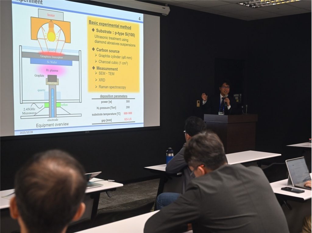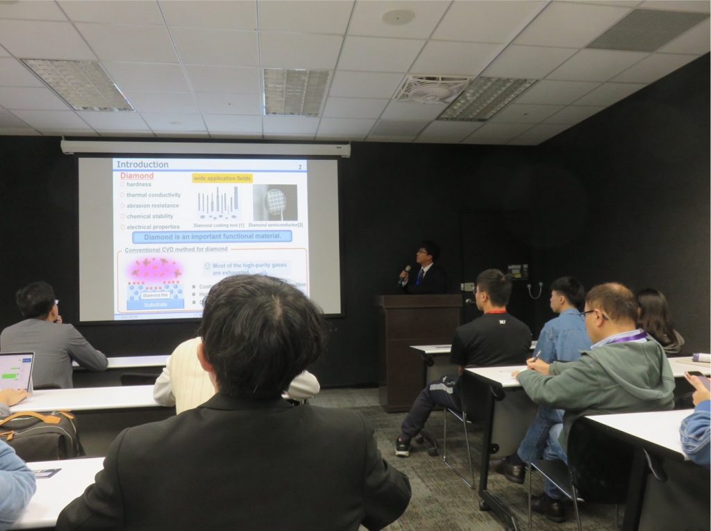 会議初日は、会場や発表、質疑応答の雰囲気を掴むため、会場に赴き、質疑応答の英会話が半分程度しかわからないことに戦々恐々としました。私は自分の英語能力に自信がなく、質疑応答を心配していました。しかし、初日に英語力不足を痛感したことで、質疑応答は流れに任せるとして、発表は完璧にするため、寸前まで練習しようと切り替えました。そこから、3日目の発表までは、会場で発表の合間に資料を確認し、ホテルでは、隣人にクレームを言われるか、一人で話している変人だと思われてしまうのでは、というほど練習を行いました。ホテルの傍にあったコンビニでエスニックな香りに包まれながら買い物をし、息抜きしたのをよく覚えています。発表当日は、練習の甲斐もあって、発表をやり切り、質疑応答も拙い英語でしたが、何とかやり取りすることができました。また、発表後には、同分野の研究をされている九州大学のAhmed准教授からお声をかけて頂き、意見交換などもできました。最大のミスは、紺色のスーツと黒い会場の壁が見事に融合し、顔だけが浮いている発表者のようになってしまったことです。次回への反省といたします。そんな失敗などもありましたが、発表練習と、大参先生の手厚いご指導を賜ったことで、発表では、Student Oral Presentation CompetitionでBronze awardを受賞させていただきました。今回の国際会議は、似た分野の先生方などと意見交換やアドバイスを頂ける機会に恵まれ、得難い貴重な経験となりました。また、単純ではありますが、世界中の研究者との英語を用いた質疑応答、お互いの研究分野について語る姿はカッコよく、憧れを感じました。学会聴講でも、近年注目されているリチウムイオン電池、太陽光発電、次世代2D半導体材料WS2など、異分野の最先端な研究について知ることができ、今までにない経験ができました。私自身は、次世代パワー半導体材料や量子デバイス材料への応用が期待されるダイヤモンドの研究を行っています。国際学会は、研究の流行を掴むこと、ダイヤモンド以外の半導体材料や、電気化学分野への知識を深めることで、ダイヤモンド、ひいては自身の研究の新たな可能性を発見する糸口になると感じました。これを糧、また原動力としてこれからの博士後期課程も精進していきたいと思います。さらに、3日目は学会主催の宴会もあり、その場でも韓国や台湾の先生方と、研究の話や雑談などコミュニケーションをとることができ、非常に濃密な一日となりました。